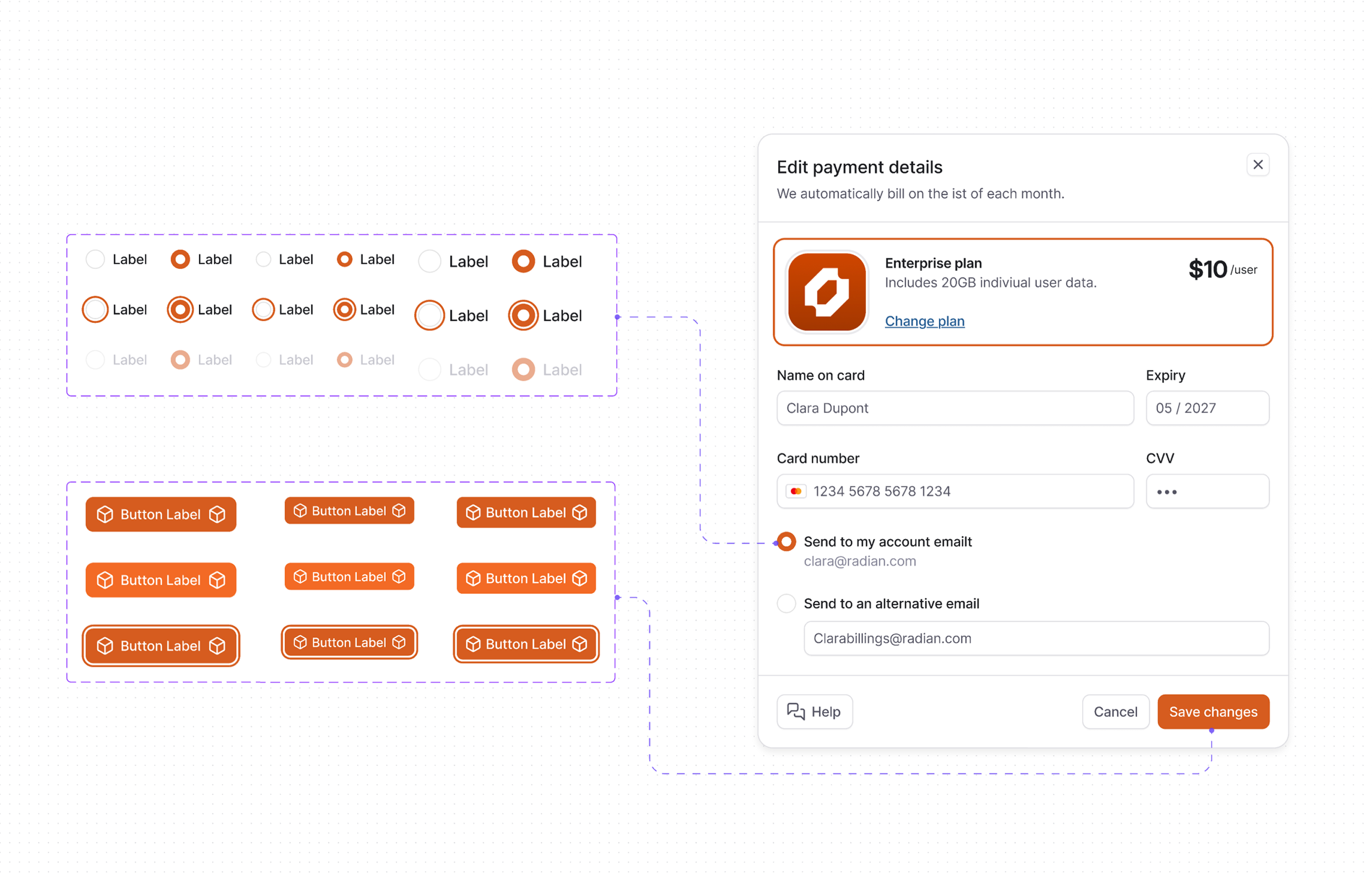 - Components: All of core UI components like buttons, inputs, checkbox, and more. Each one created with different variants so you can customize according to your preference.