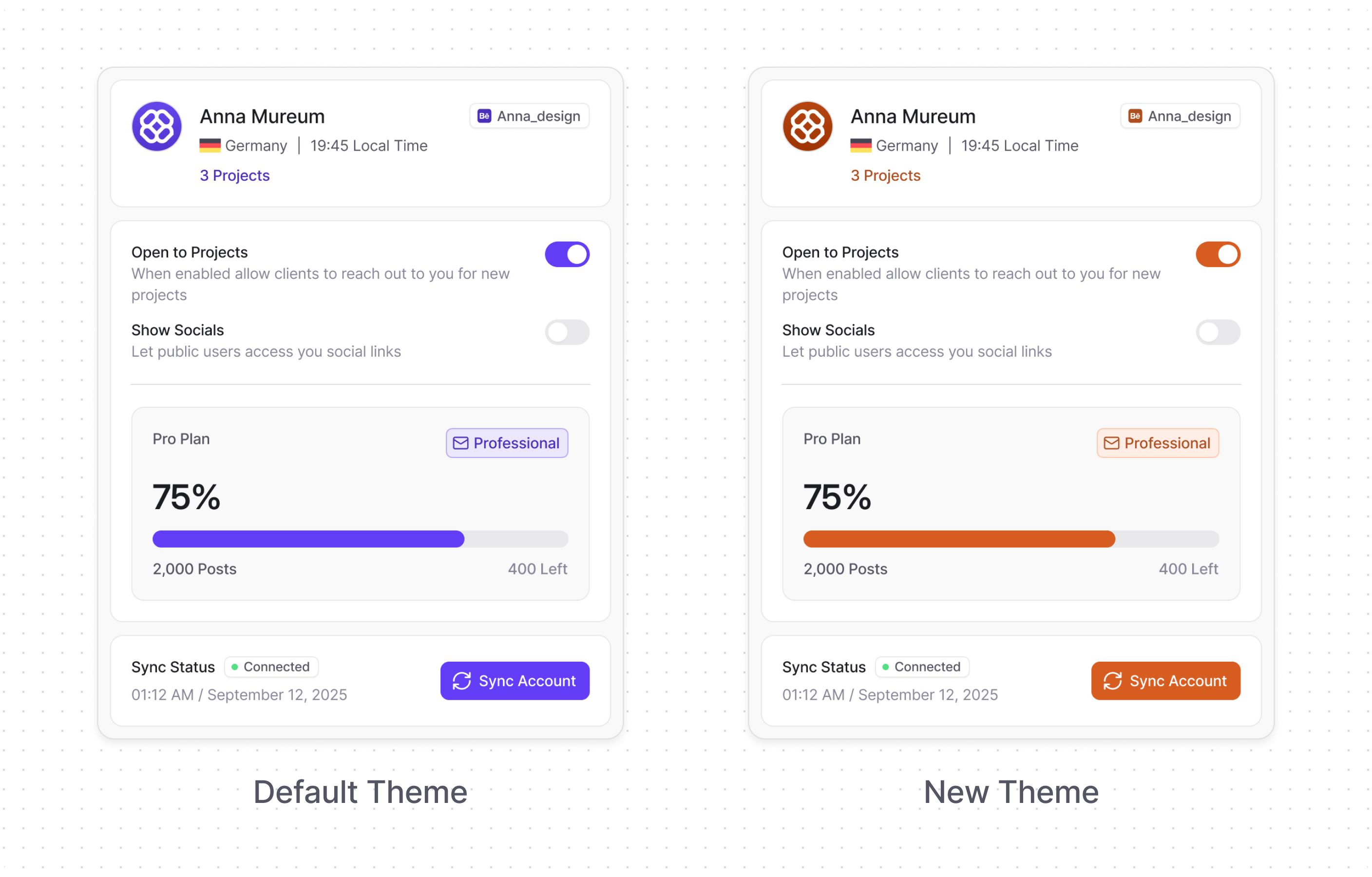 - New Theme: All the design structure remains the same, just the brand color is changed.